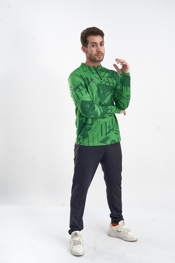 A long-sleeved winter warming suit made of raw synthetic fibric, composed of a sweatshirt and sports pants with modern cuts, a drawstring in the middle and pockets without a zipper, The fit gives you complete comfort and flexibility during exercise. It protects you from harmful air currents with materials designed for that purpose.